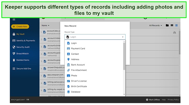 I kept passwords and other sensitive data safe in my Keeper vault. These vaults can be used to create and keep different records like passwords, logins, identity cards, credit/debit cards, addresses, passports, medical records, contacts, bank accounts, drivers’ licenses, birth certificates, photos, files, and notes. It also allows you to attach files and images to a login entry. This could be useful if you want to add an image of a map for directions to your address information.